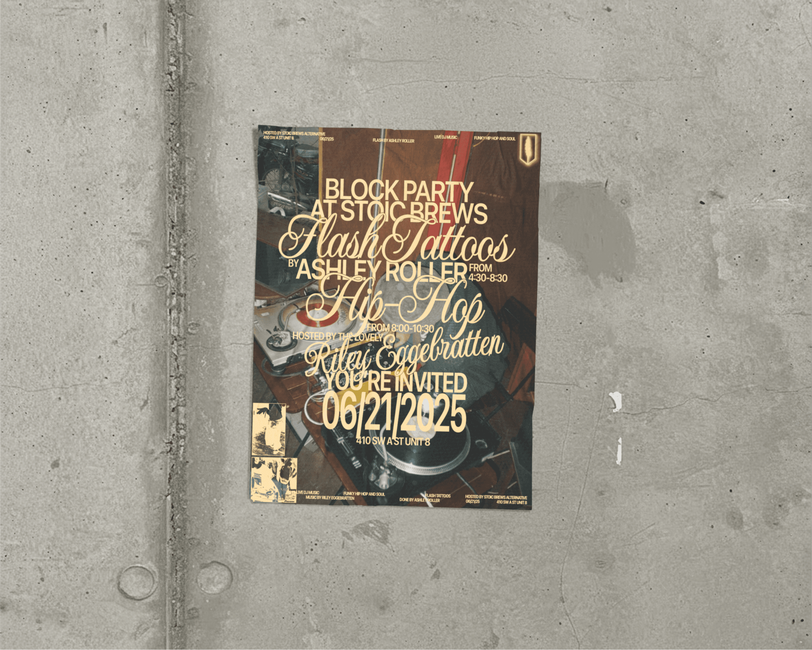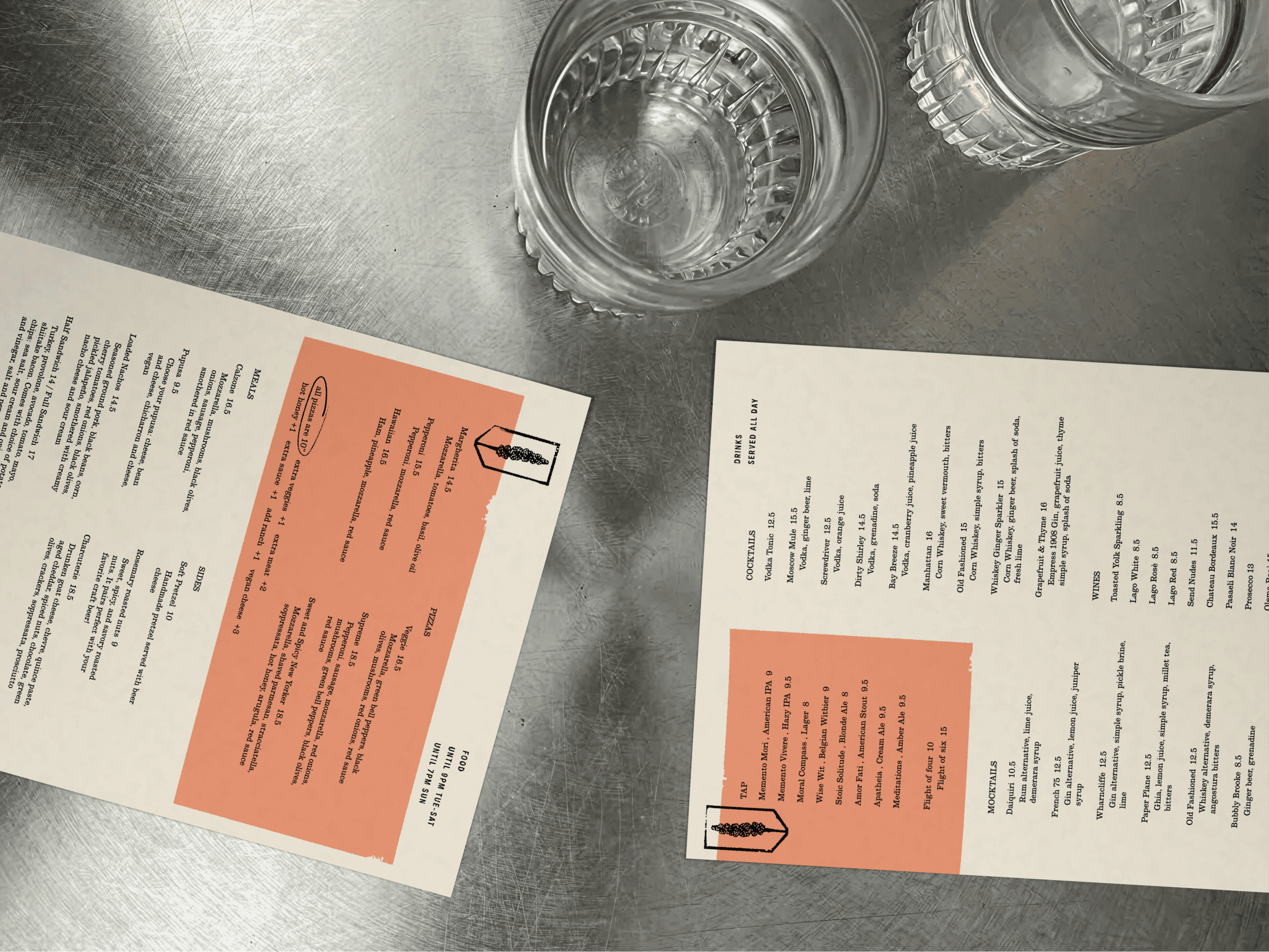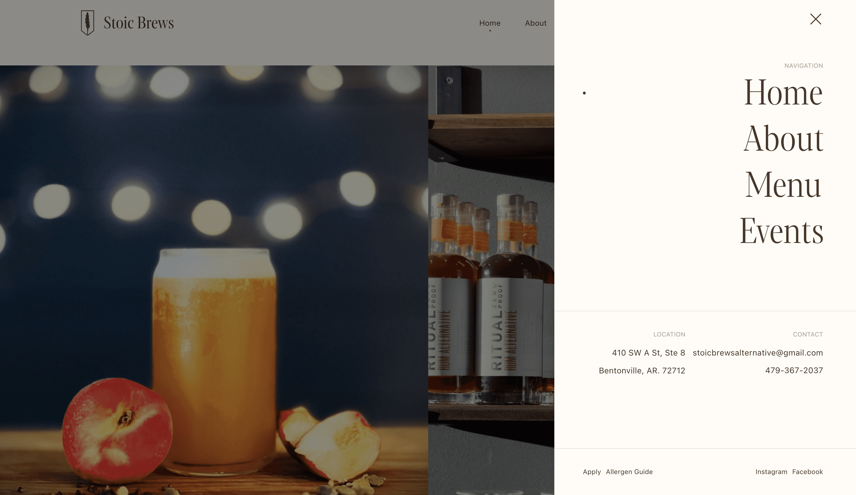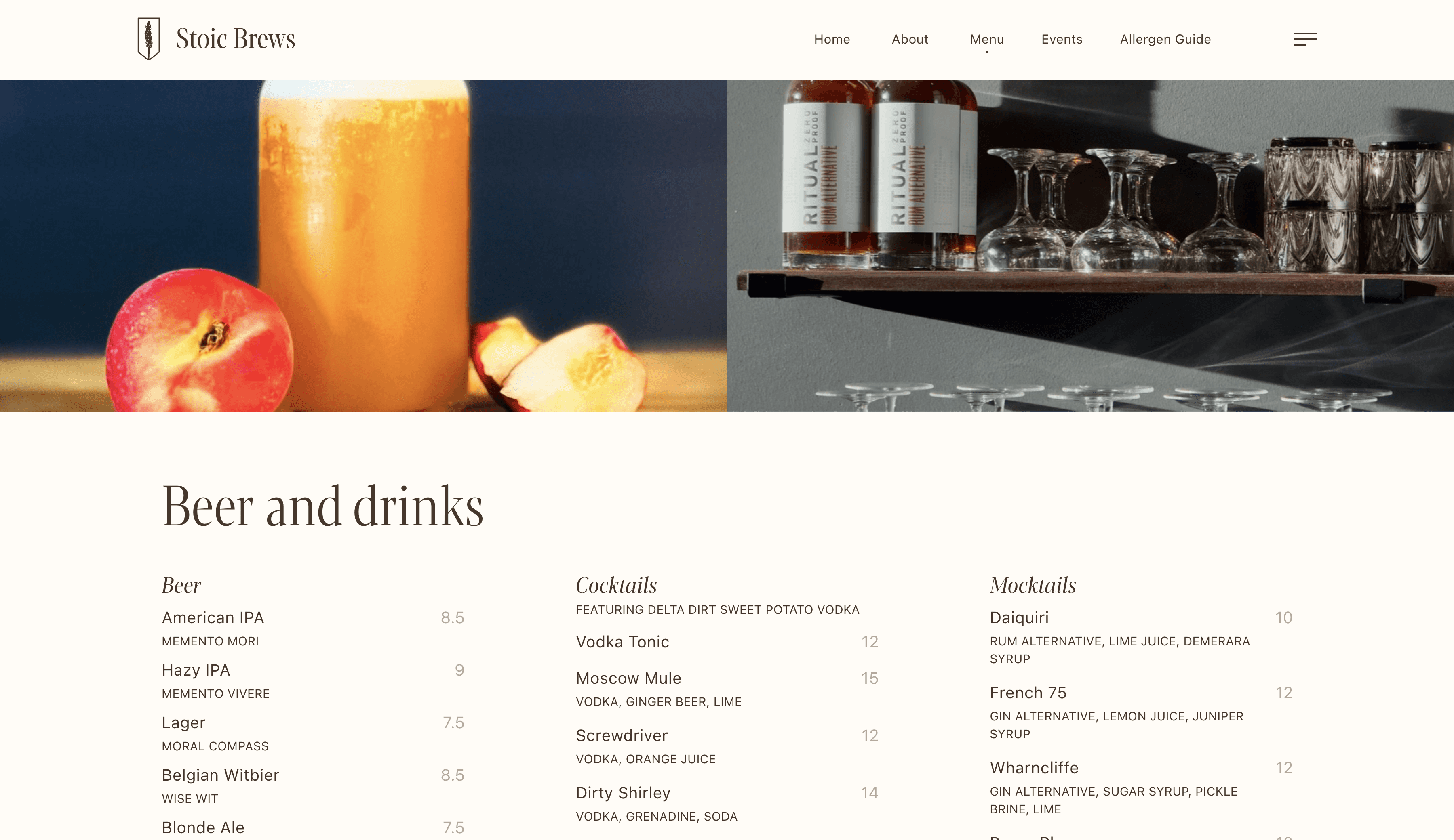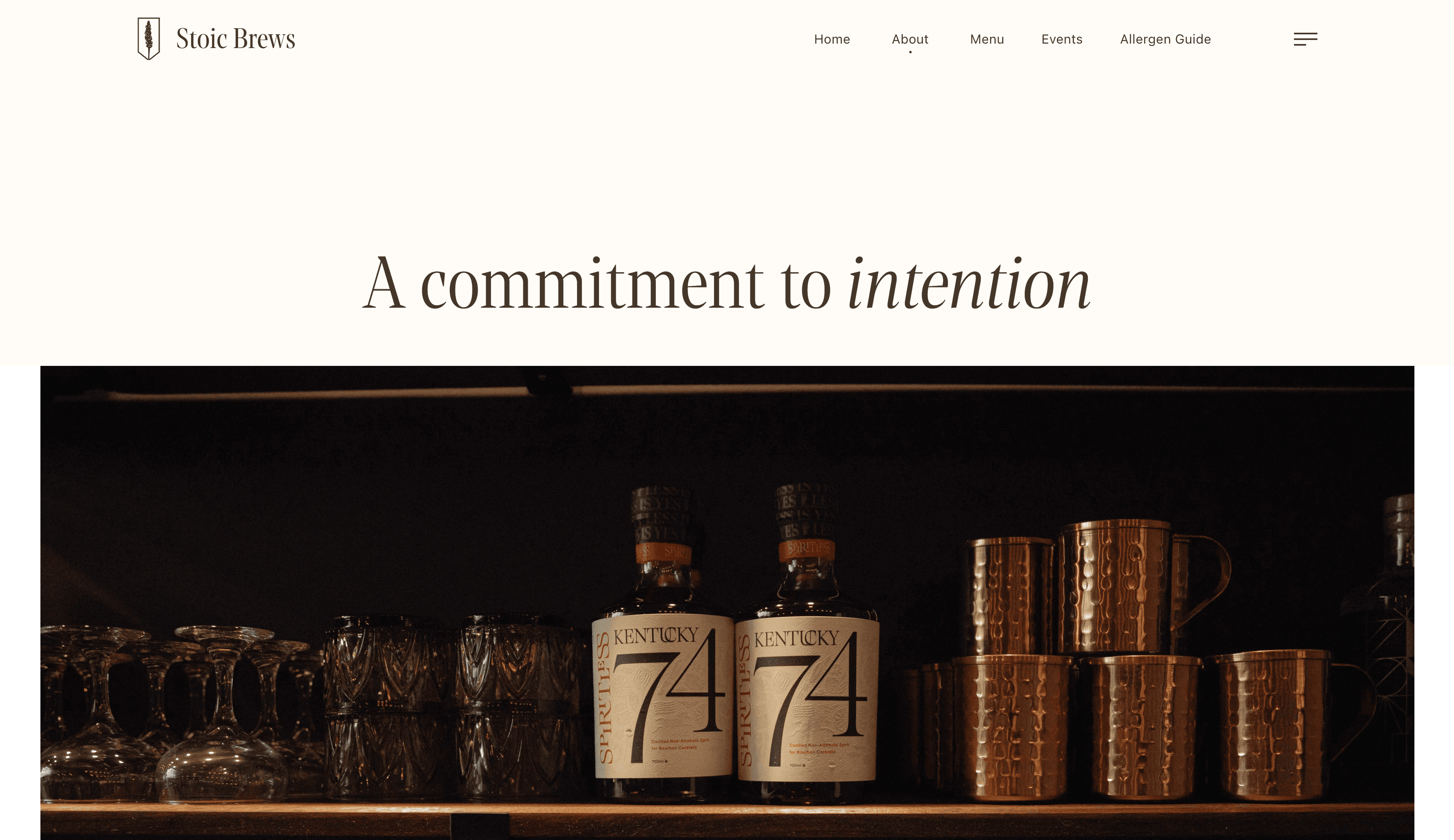 This brewery sought to have an atmosphere inspired by stoicism, literature, and nature. This was further congealed through the business's design mediums by the use of natural tones, and typewriter-inspired serif fonts.